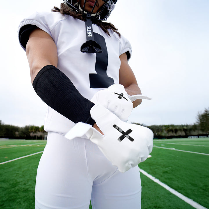 Experience the ultimate in performance with Sleefs Faith Cross Black Sticky Football Receiver Gloves, expertly designed to elevate your game. Crafted with innovative, ultra-sticky material, these gloves ensure maximum grip and durability in any playing condition, allowing you to focus on making elite-level plays without compromise.